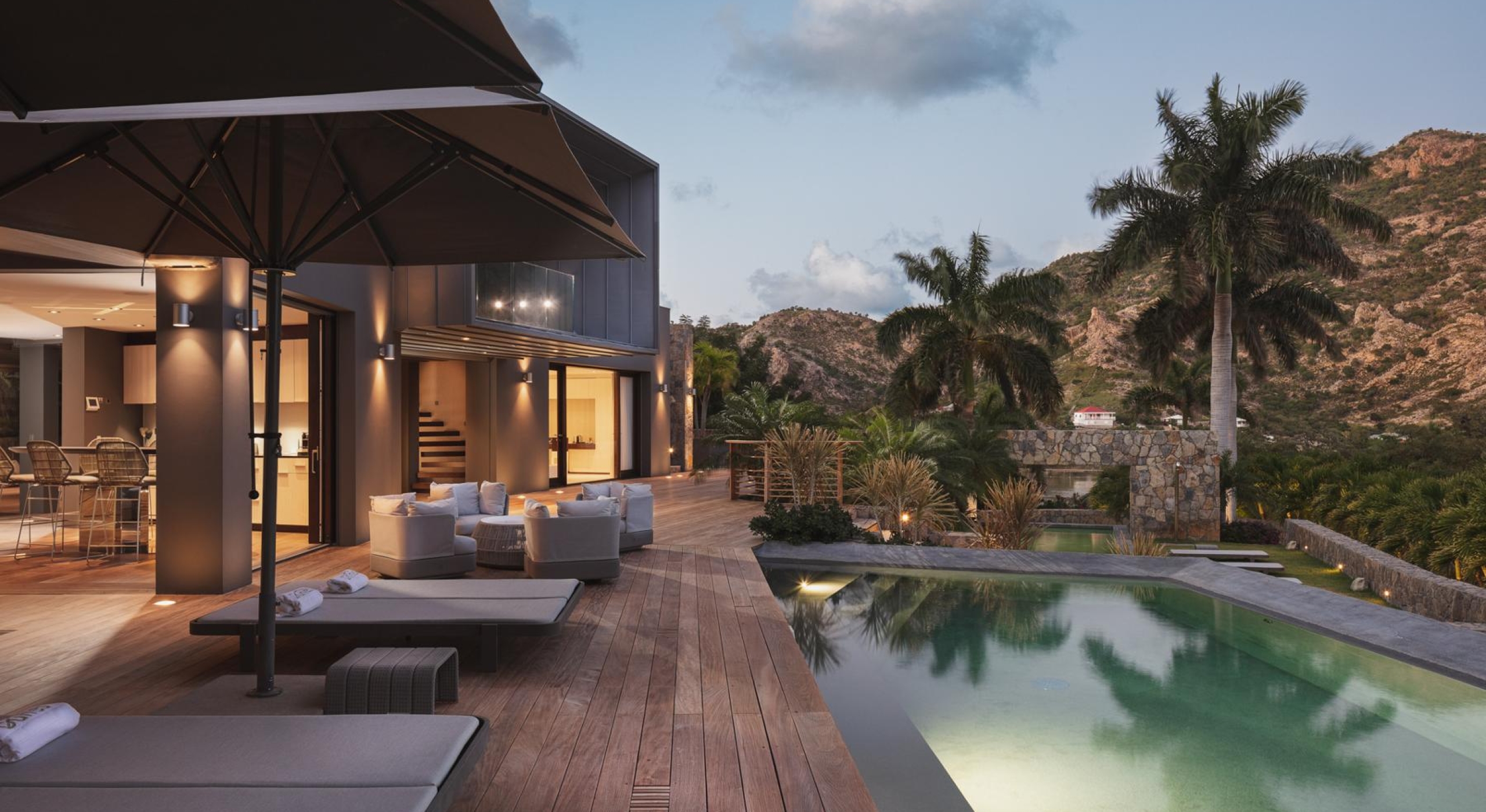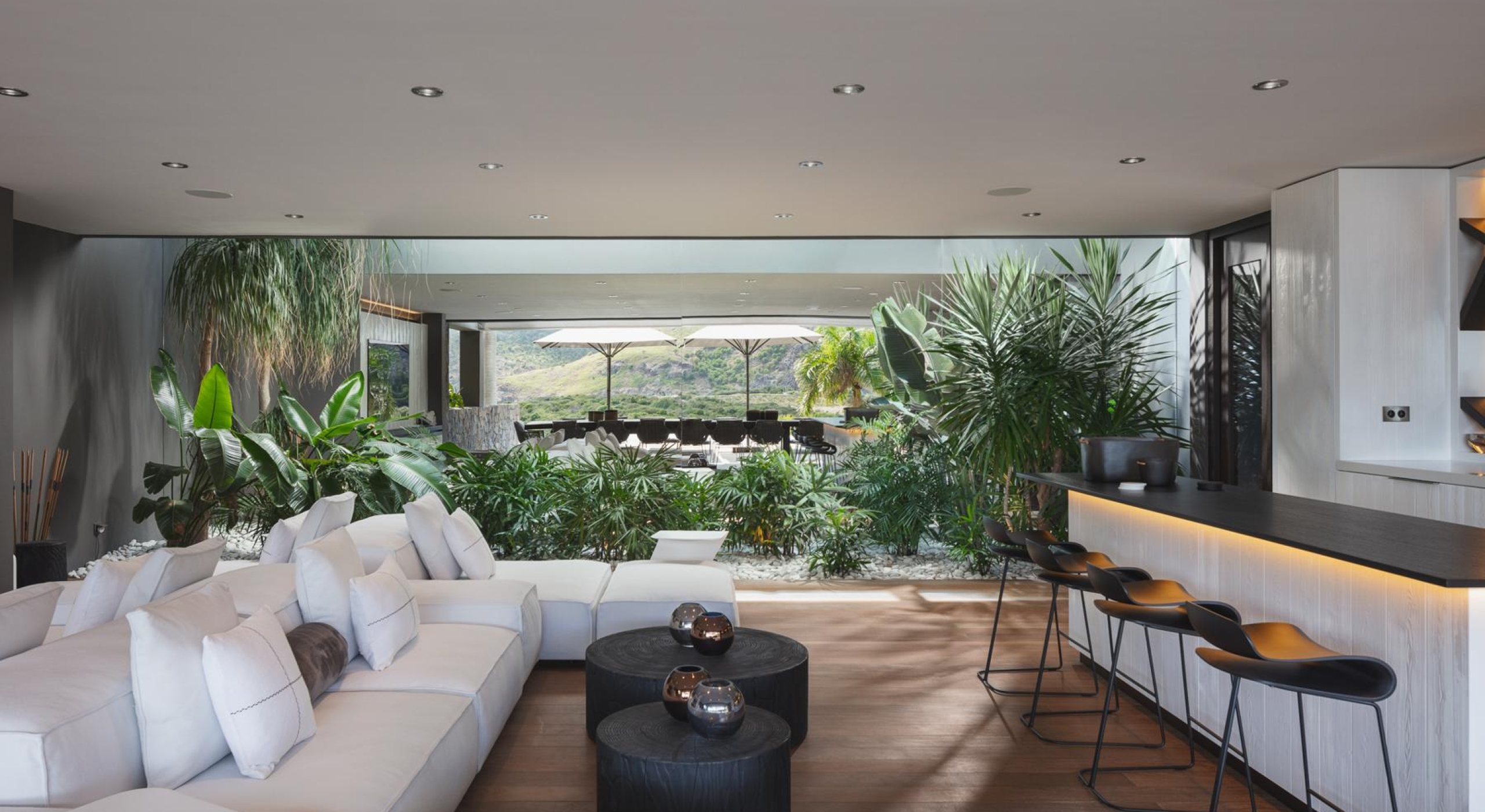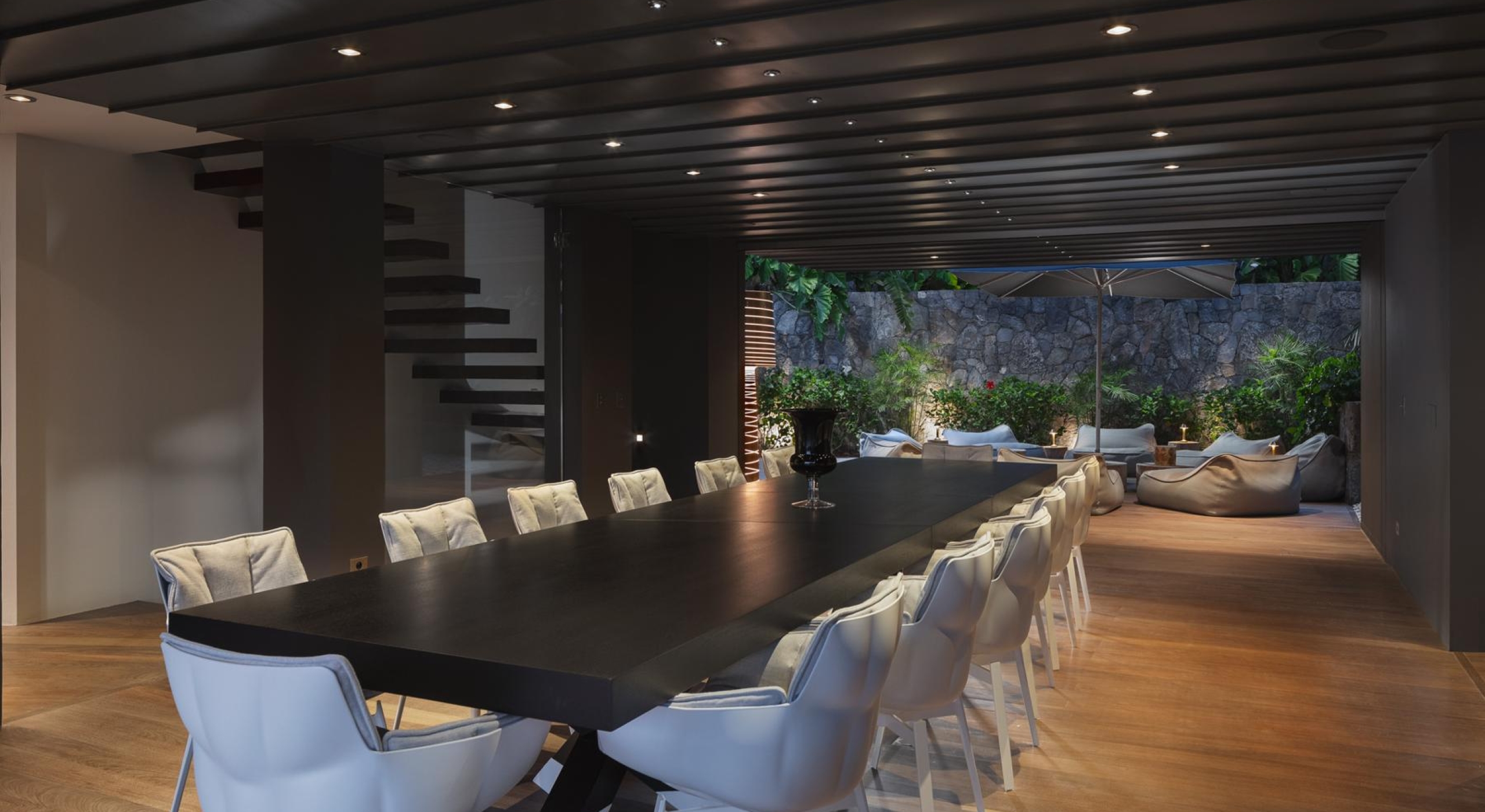 Two words best describe the spirit of this unique property: Refinement and luxury. You will enjoy the two long heated pools as well as the fitness room. The decoration is made of deep brown Wenge wood and white oak design furniture. This villa has been designed for you and your friends or family, to get every last innovations.
