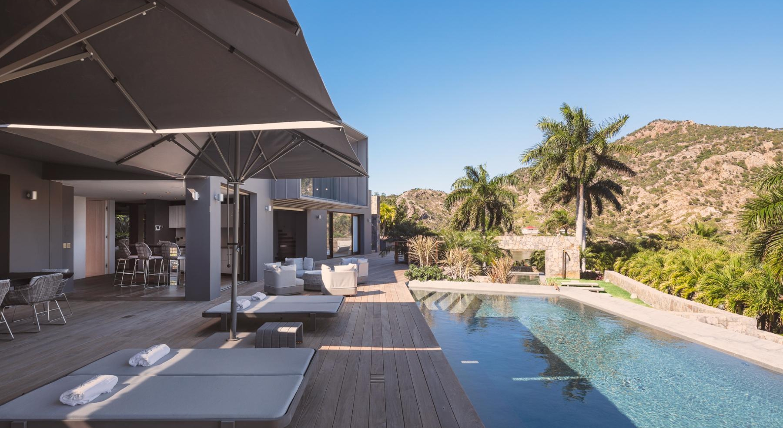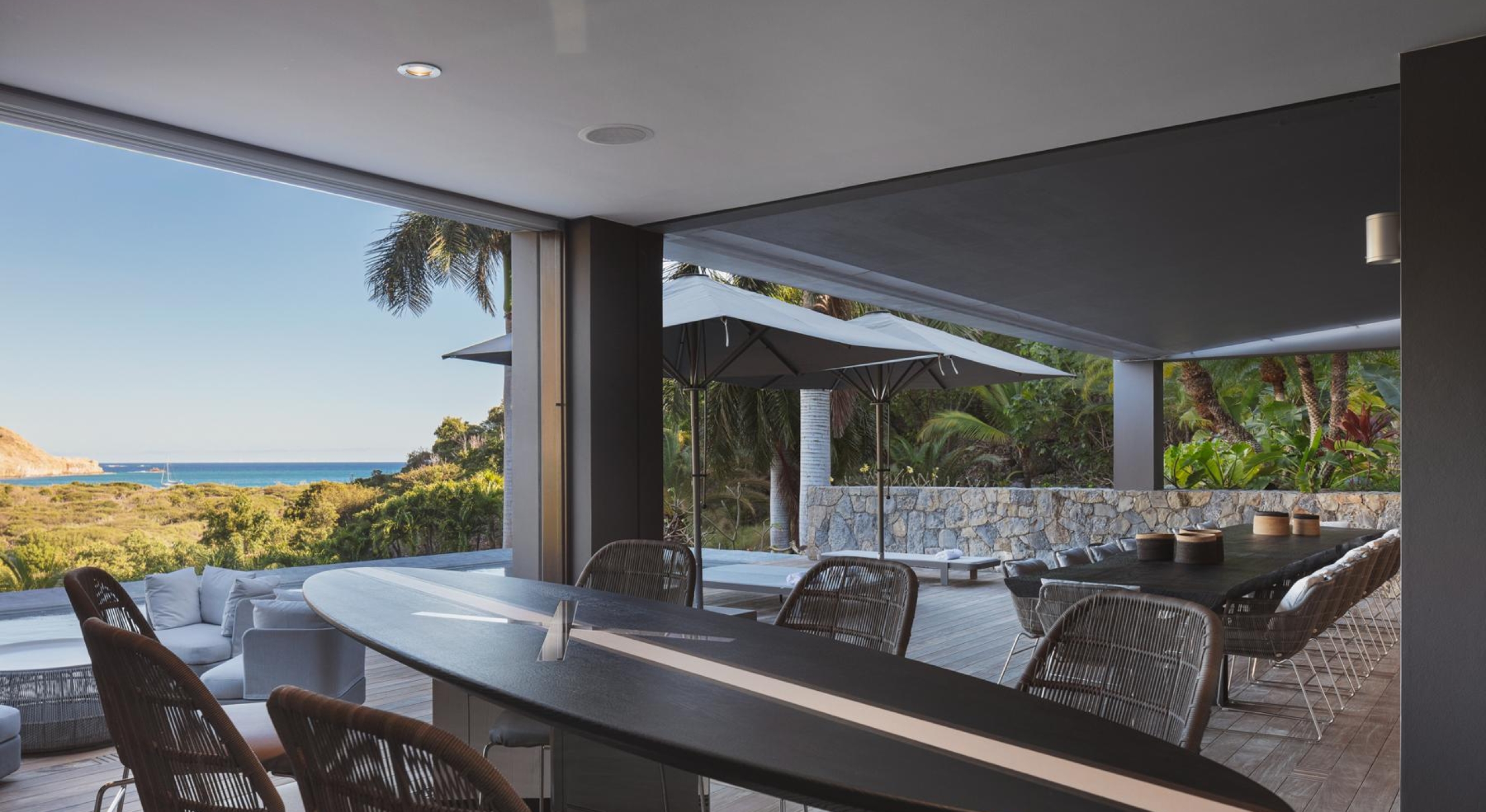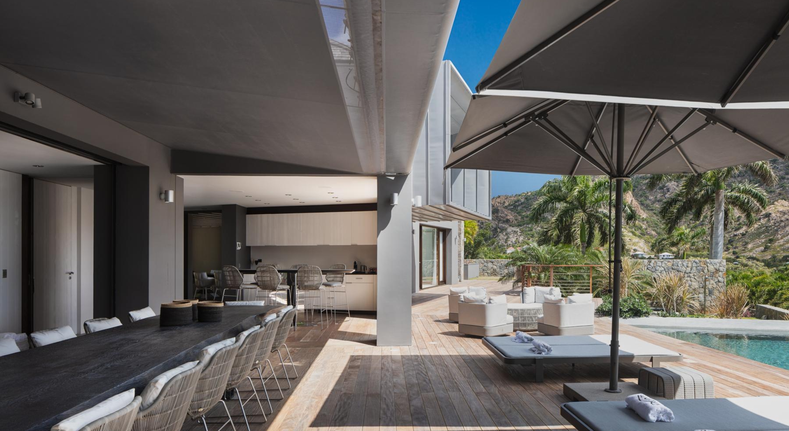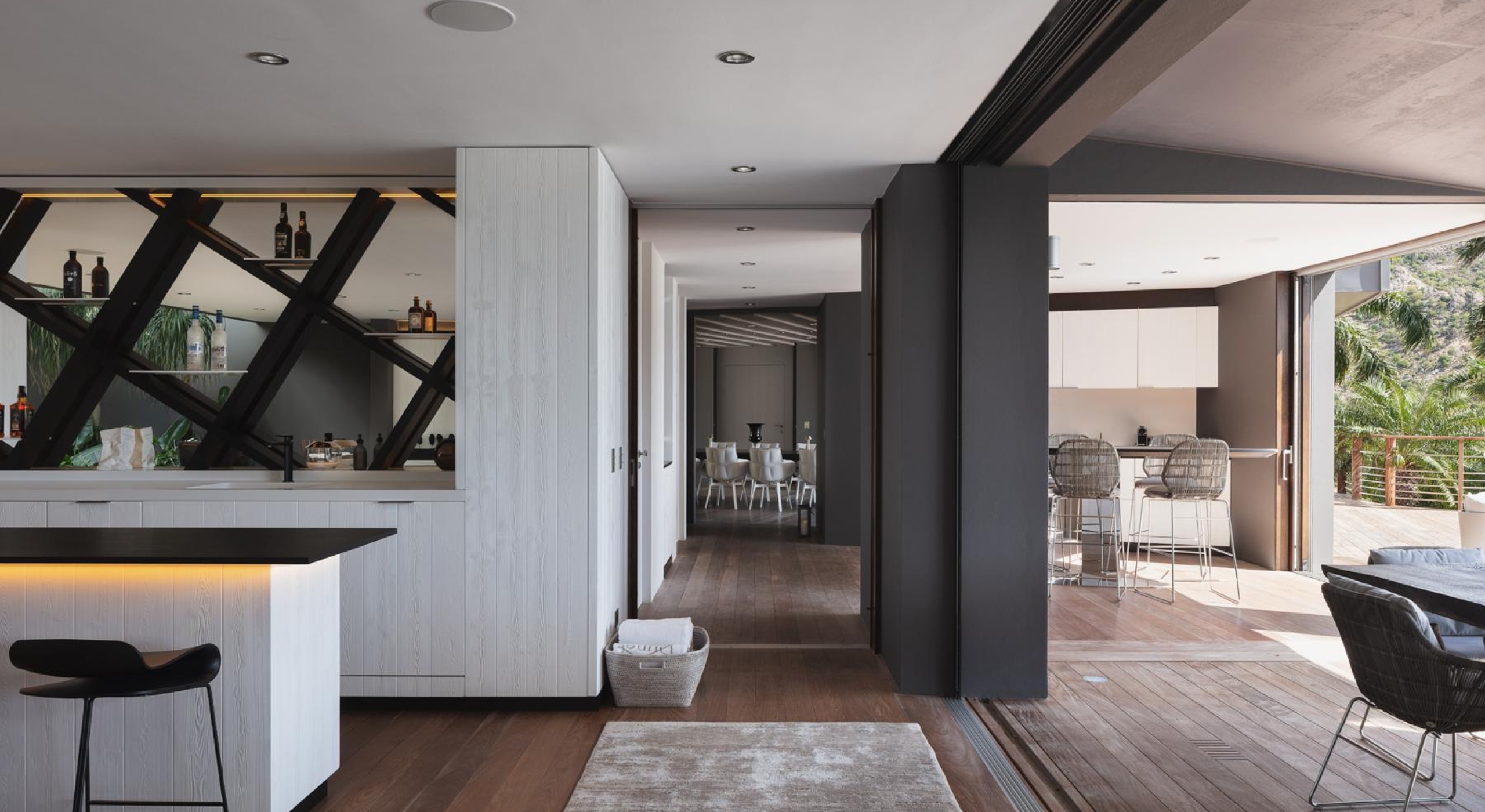 Two words best describe the spirit of this unique property: Refinement and luxury. You will enjoy the two long heated pools as well as the fitness room. The decoration is made of deep brown Wenge wood and white oak design furniture. This villa has been designed for you and your friends or family, to get every last innovations.