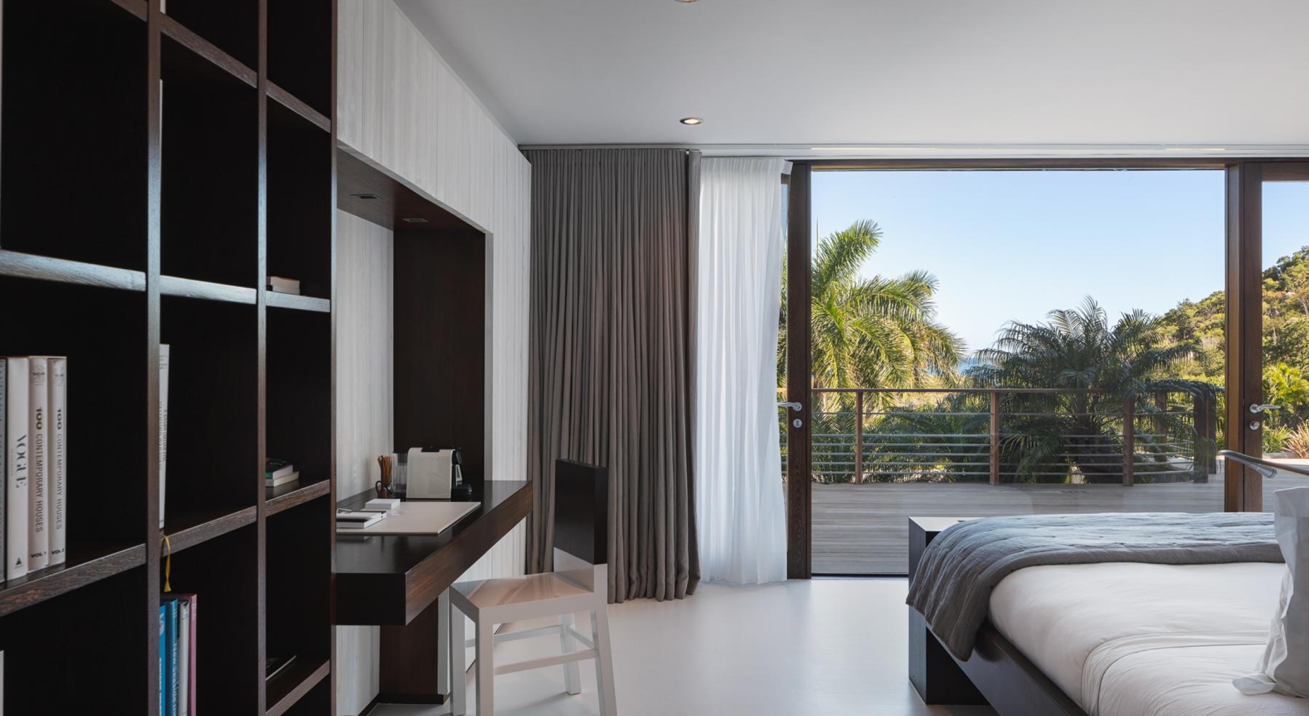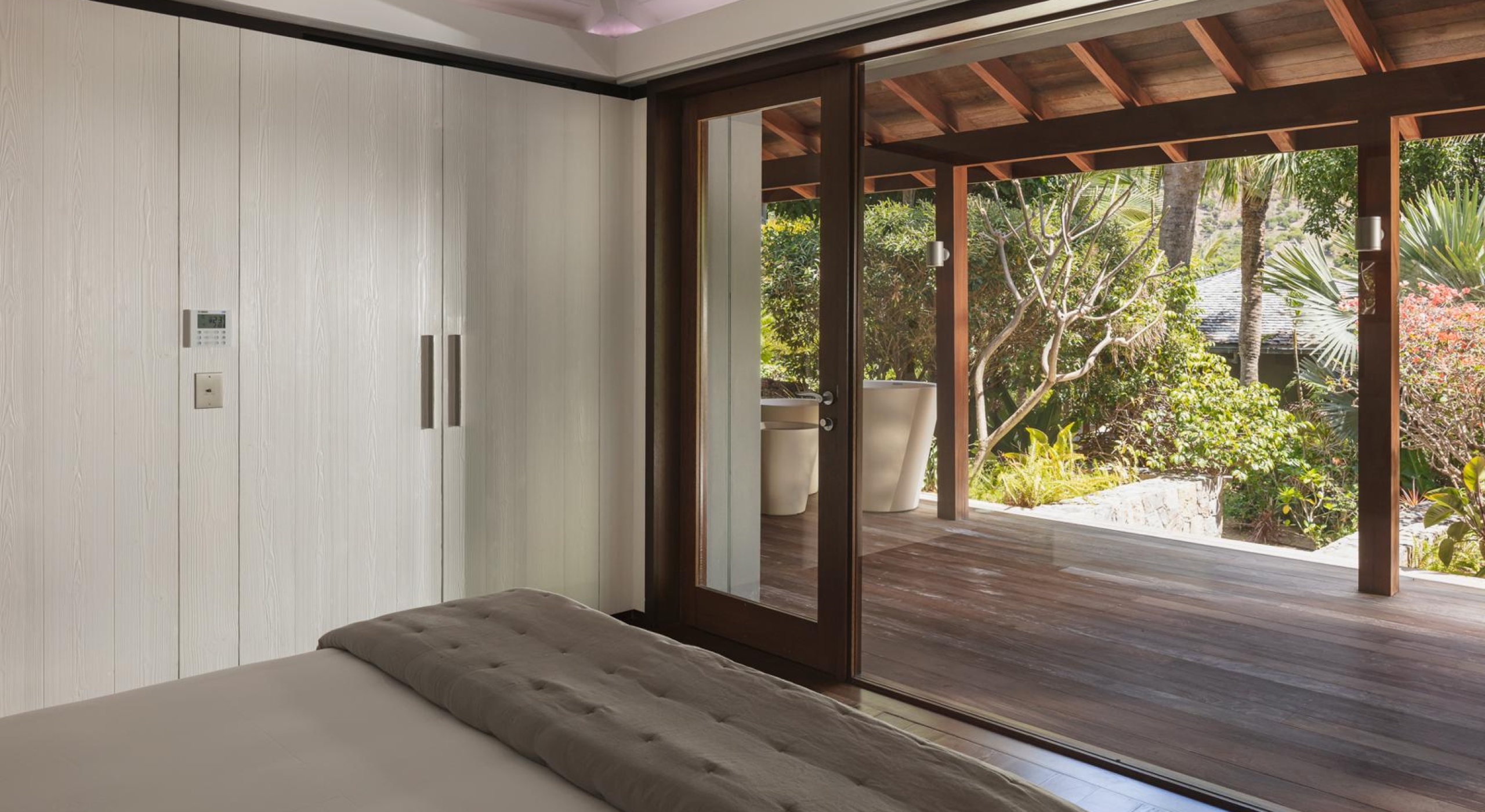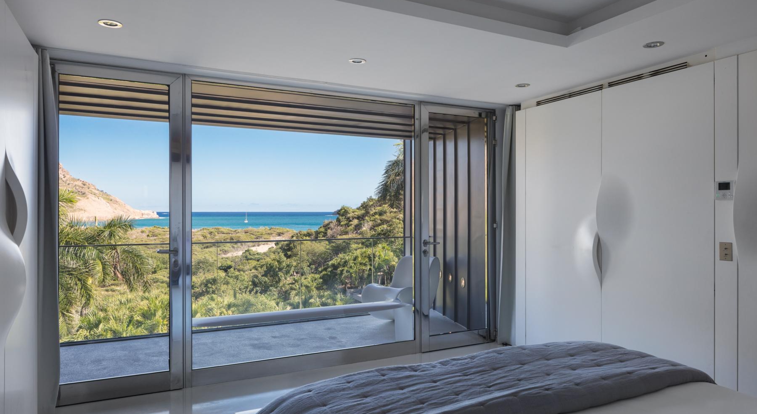 On the first floor, you will find another large bedroom overlooking Saline bay and on each side of it, two other bedrooms opened onto the lush tropical garden.