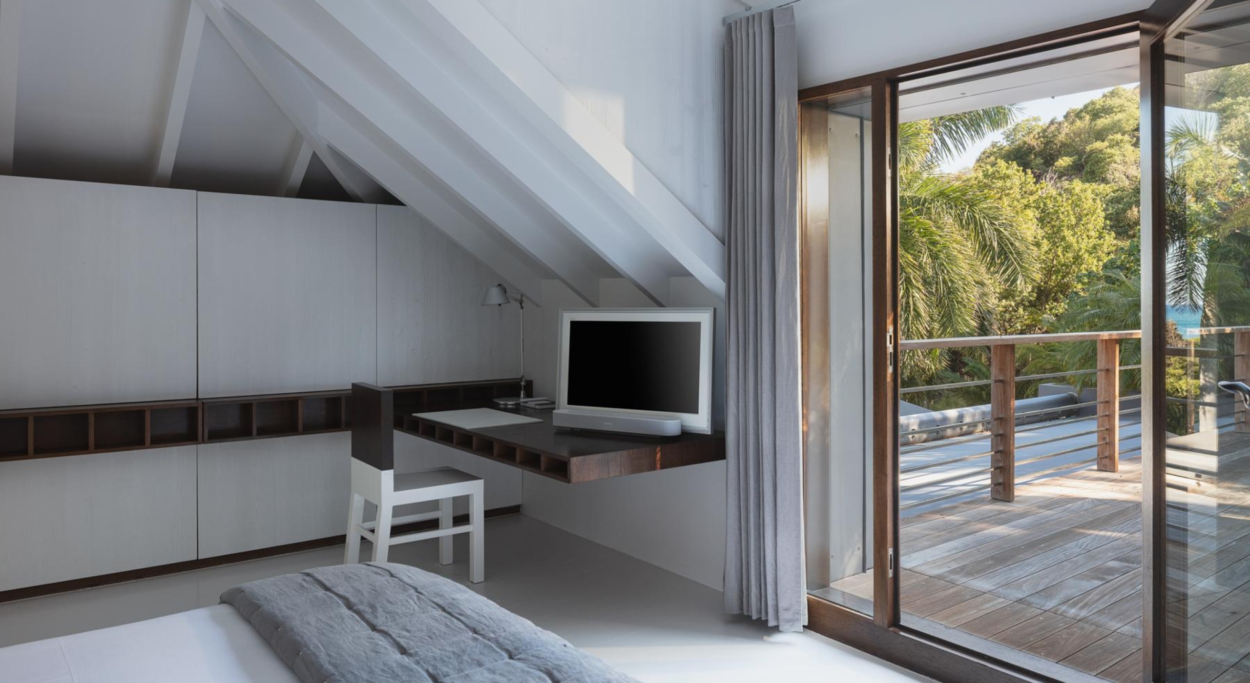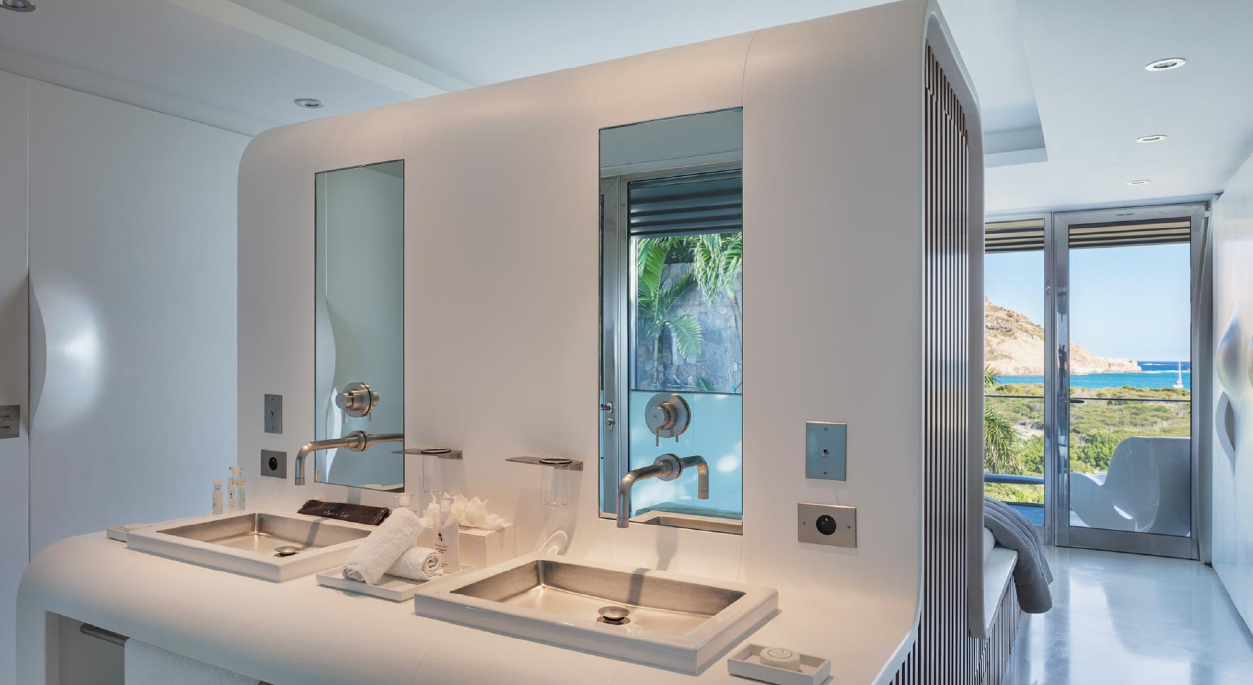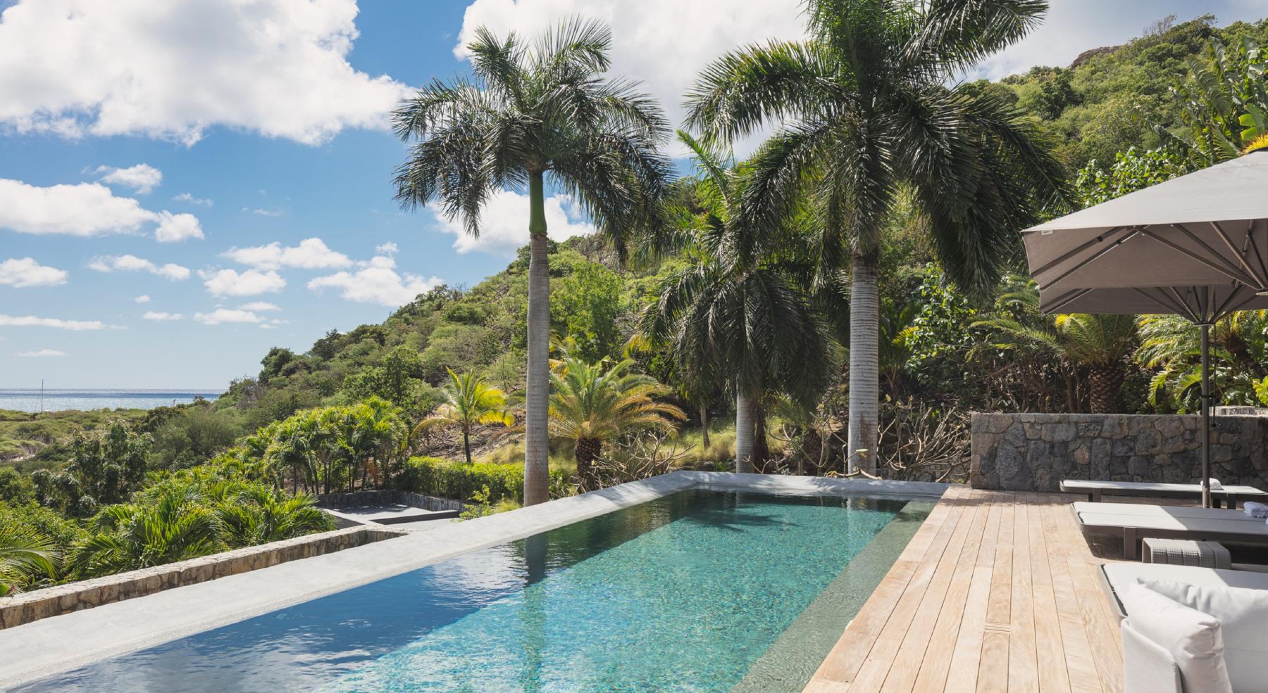 On the first floor, you will find another large bedroom overlooking Saline bay and on each side of it, two other bedrooms opened onto the lush tropical garden.